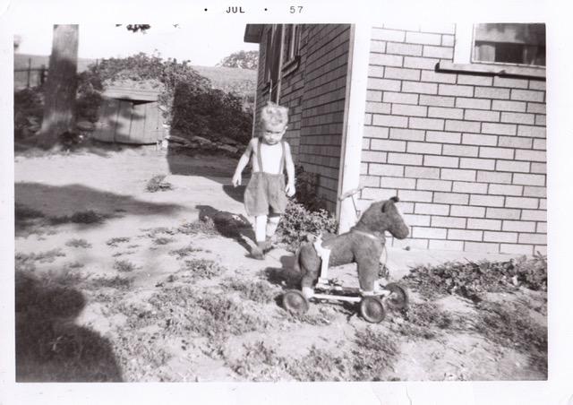 This is 2 year-year-old me, prepared for a day of riding my trusty steed, roaming southwest Iowa.